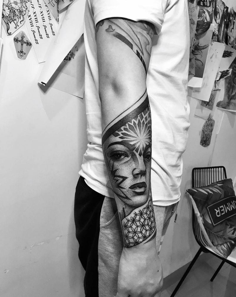 当前位置: 首页 >福建省厦门市纹身店-厦门云山刺青Tattoo工作室纹身图案>不记名纹身图片_手臂欧美写实图腾纹身图案