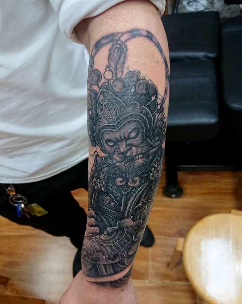 当前位置: 首页 >福建省厦门市纹身店-厦门云山刺青Tattoo工作室纹身图案>旧纹身盖图纹身图片_手臂传统人物成品纹身图案