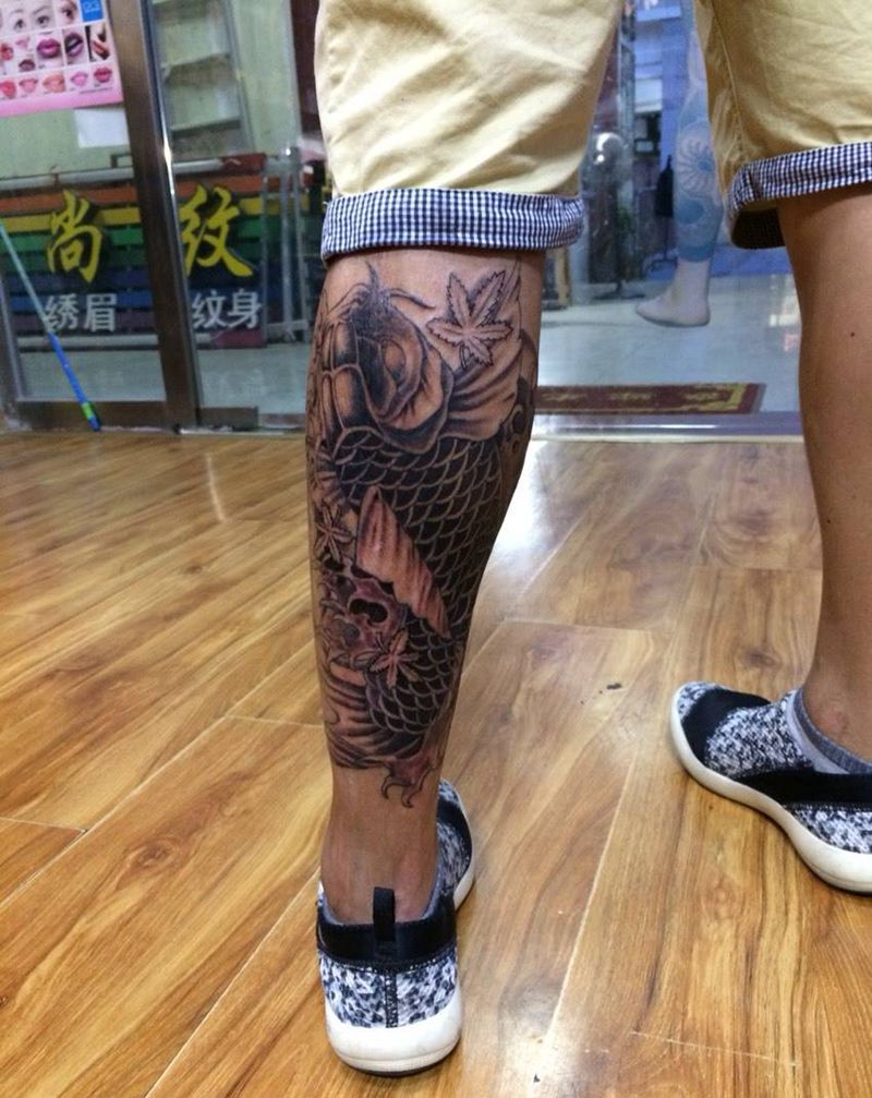 鲤鱼盖疤纹身图片_腿部传统动物成品纹身图案