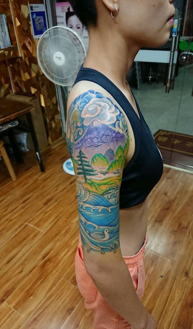 当前位置: 首页 >福建省厦门市纹身店-厦门云山刺青Tattoo工作室纹身图案>龙猫之行纹身图片_肩部手臂清新植物成品纹身图案