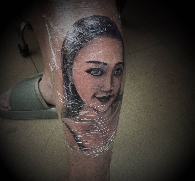 • T包小腿吹火男+阿多福纹身图片_腿部老传统新传统吹火男阿