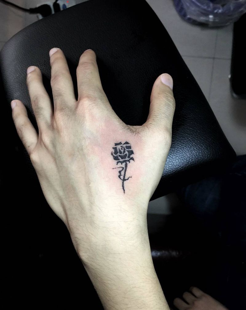 • 手背潮流时尚的玫瑰花眼睛纹身图案
