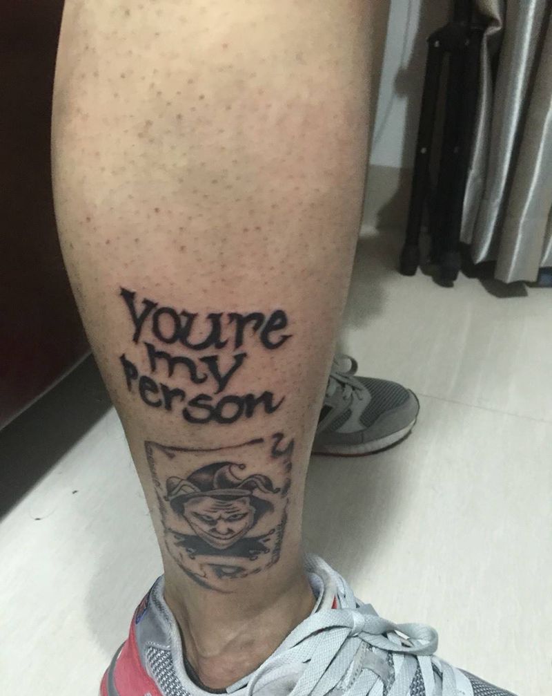 • T包小腿吹火男+阿多福纹身图片_腿部老传统新传统吹火男阿
