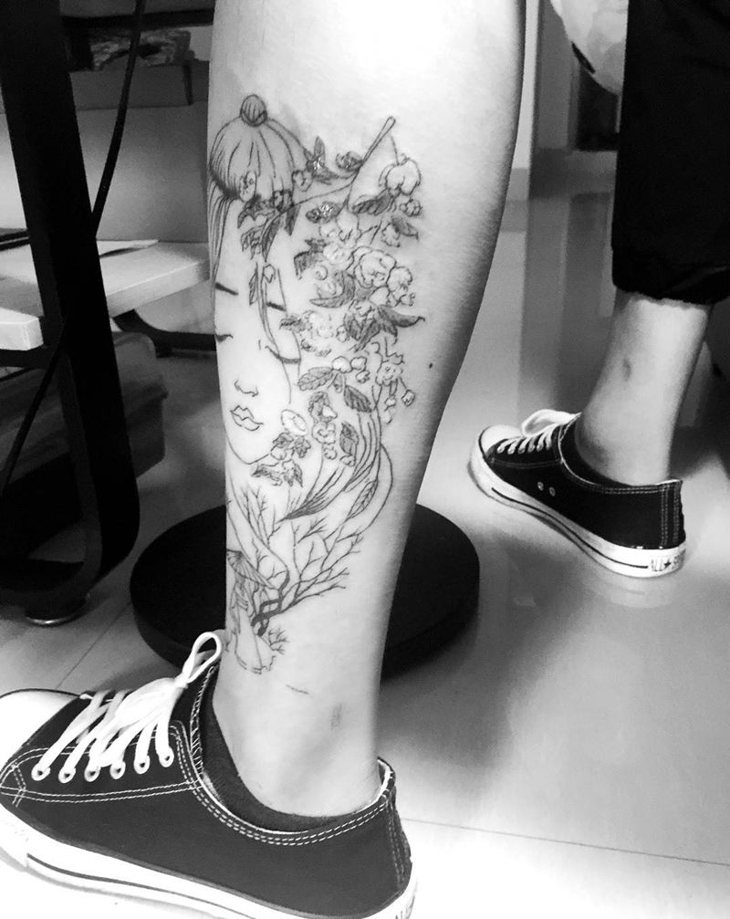 • T网红王老大花腿龙纹身图片_腿部新传统纹身图案