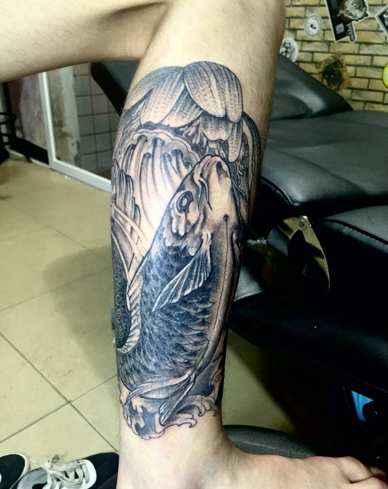 • T网红王老大花腿龙纹身图片_腿部新传统纹身图案