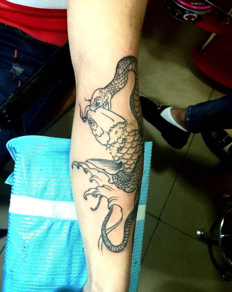 • T网红王老大花腿龙纹身图片_腿部新传统纹身图案