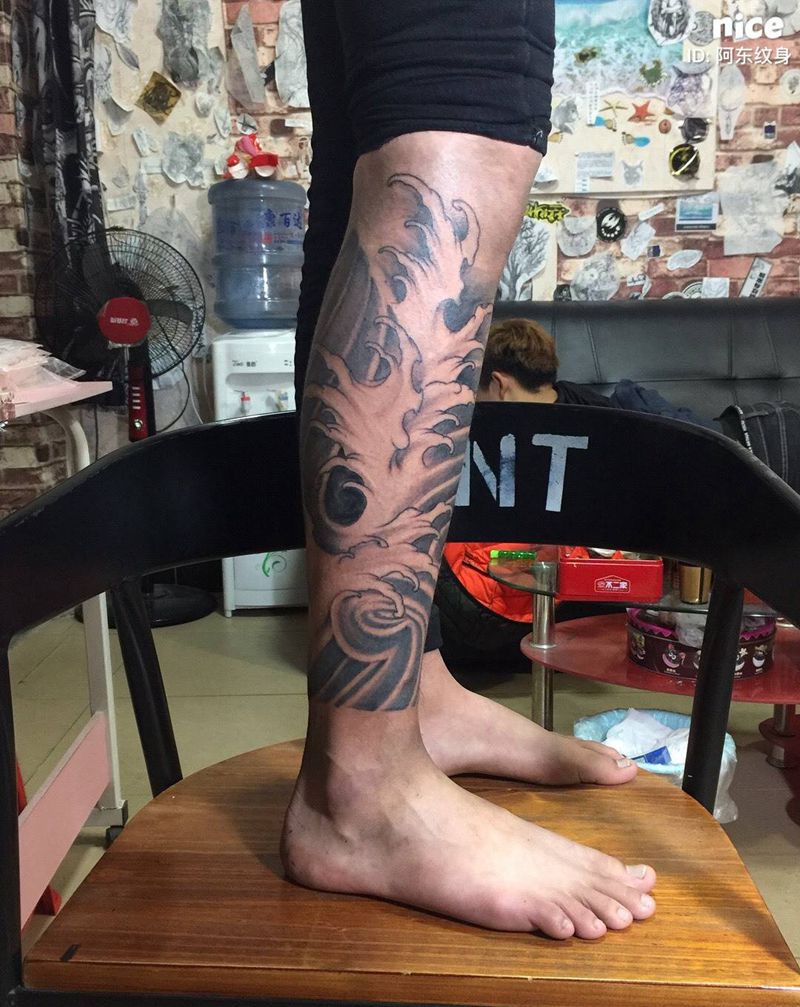 当前位置: 首页 >福建省厦门市纹身店-川刺纹身纹身图案>包小腿浪花,一口气干完纹身图片