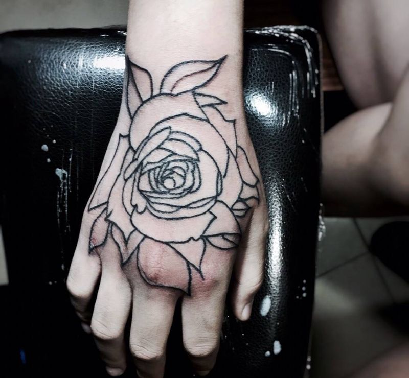 • 手背潮流时尚的玫瑰花眼睛纹身图案