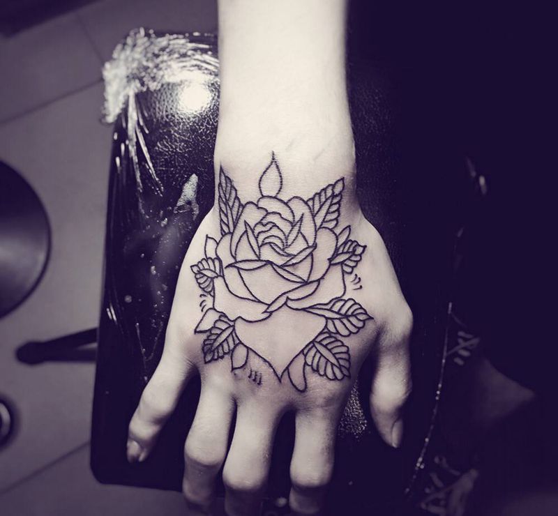 • 手背潮流时尚的玫瑰花眼睛纹身图案