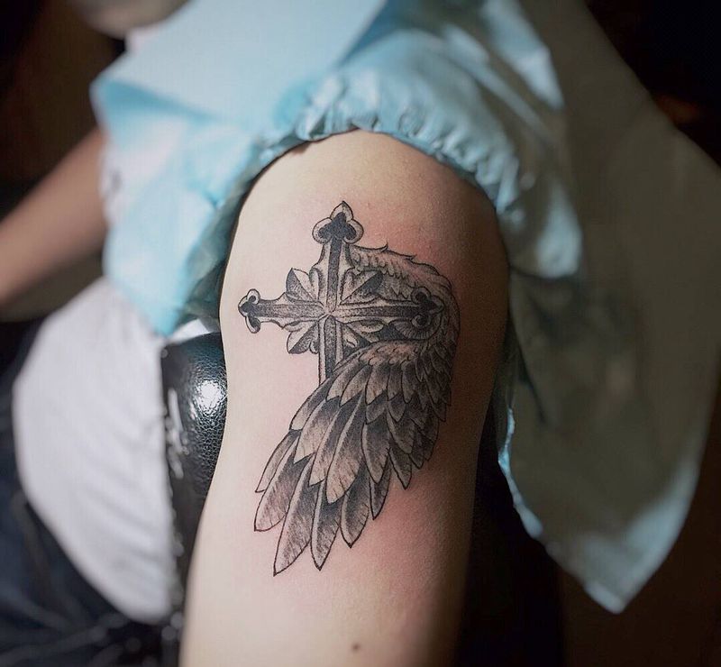 • 纹身吧推荐的披肩图腾半胛纹身图案作品展示