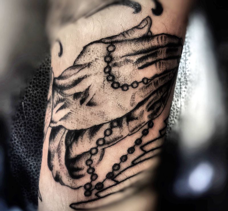 祈祷是个人信仰,关键还是得补钙纹身图片_颈部腿部几何老传统纹身图案