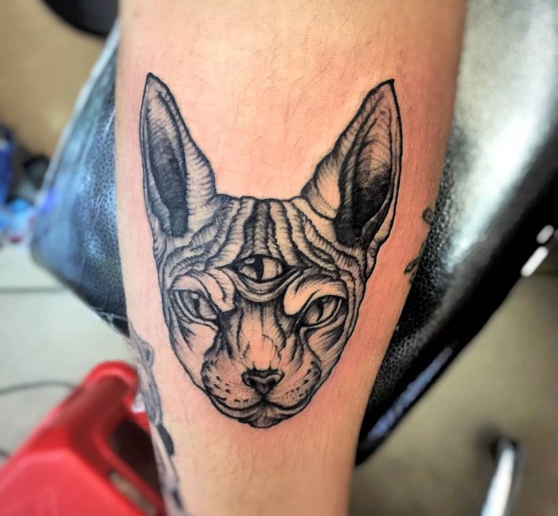 • T包小腿吹火男+阿多福纹身图片_腿部老传统新传统吹火男阿