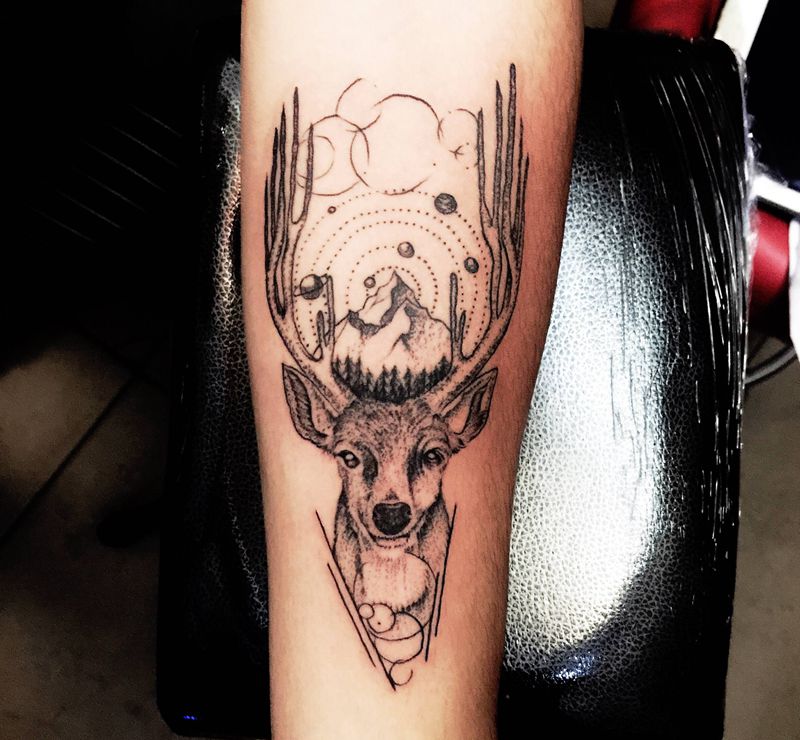 当前位置: 首页 >福建省厦门市纹身店-川刺纹身纹身图案>鹿头,寓意吉祥,无惧无畏,纹身纹身图片_颈部腿部New School纹身图案