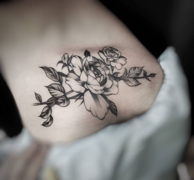 • 女性大花胸纹身_43张霸气漂亮的女性大花胸纹身图案作品