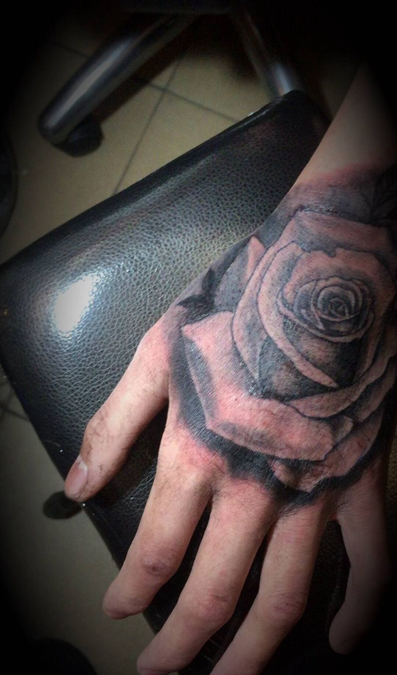 • 手背潮流时尚的玫瑰花眼睛纹身图案