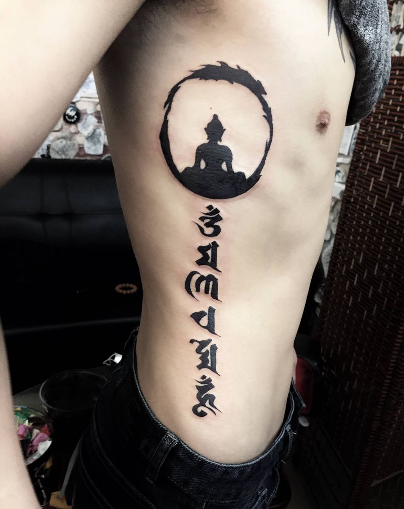 南无阿弥陀佛,阿门………………纹身图片_腰部New School纹身图案