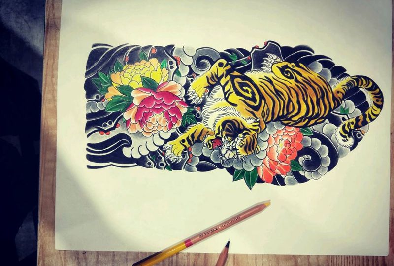• H老虎花臂手稿图片 老虎个性纹身