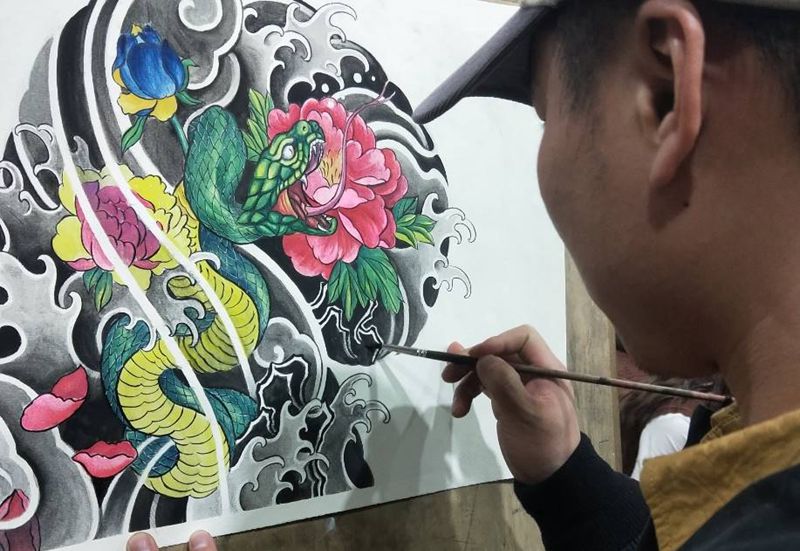 一组9张般若纹身手