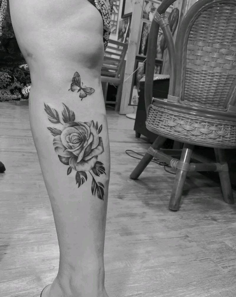 • T网红王老大花腿龙纹身图片_腿部新传统纹身图案