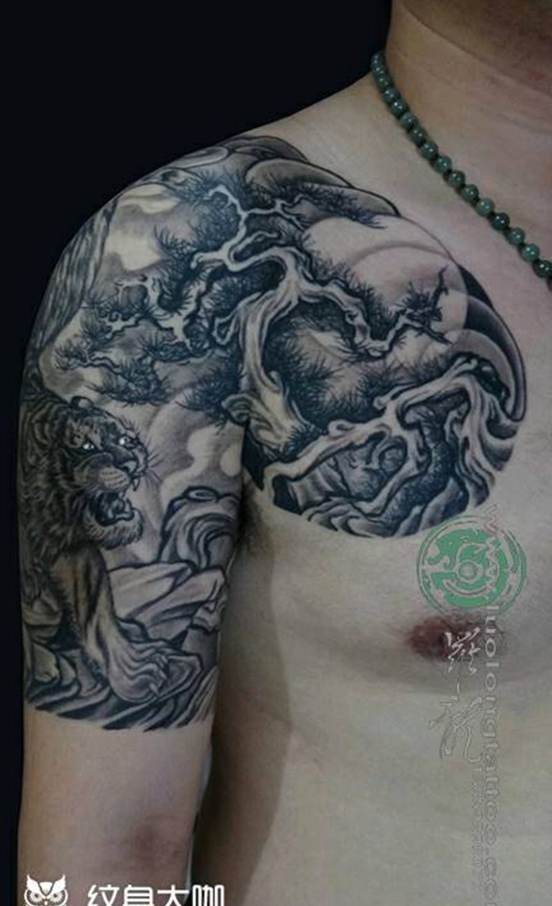 黑灰满背纹身图案
