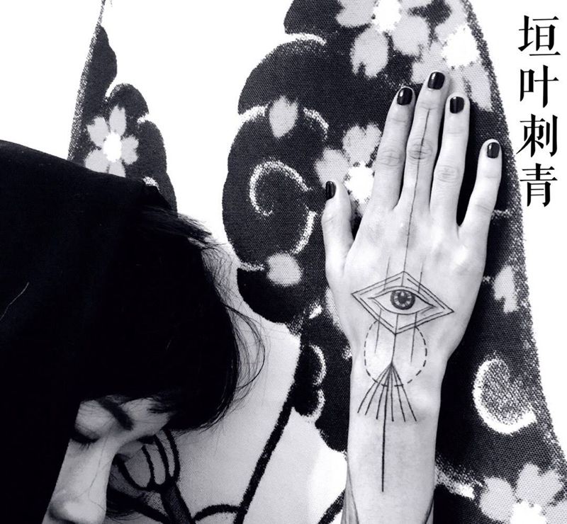 • 手背潮流时尚的玫瑰花眼睛纹身图案
