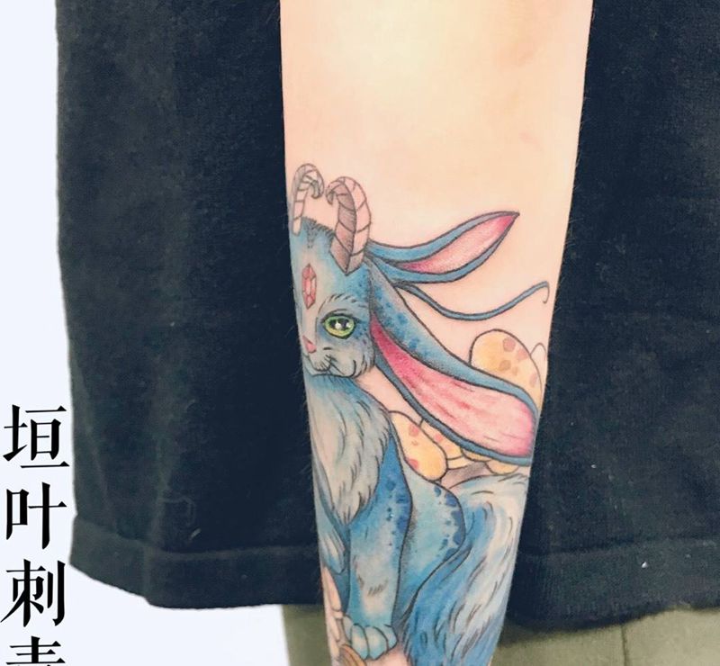 当前位置: 首页 >福建省厦门市纹身店-垣叶刺青纹身图案>兔子 猫 羊结合体纹身图片