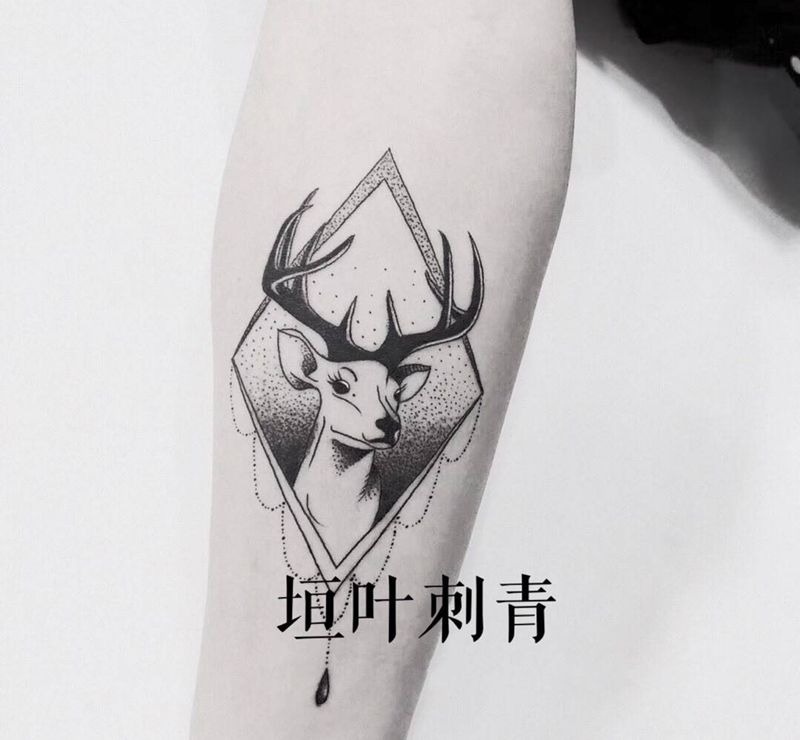 当前位置: 首页 >福建省厦门市纹身店-垣叶刺青纹身图案>麋鹿纹身图片