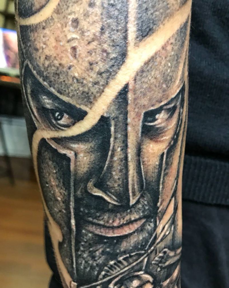 斯巴达勇士纹身图片_手臂欧美写实肖像纹身图案