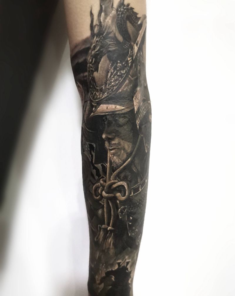 当前位置: 首页 >福建省莆田市纹身店-楠岸纹身_NA-Tattoo纹身图案>遮盖鲤鱼线条纹身图片_手臂欧美写实武士楼阁寺庙鸟居纹身图案