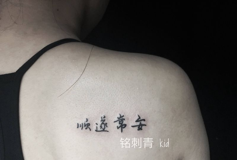 顺遂常安纹身图片_背部汉字书法纹身图案