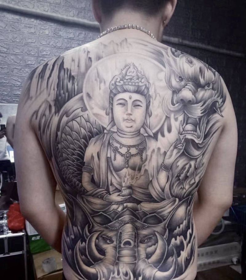 黑灰满背纹身图案