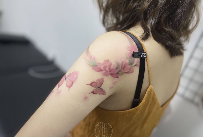 当前位置: 首页 >福建省莆田市纹身店-湘伦刺青纹身图案>樱花纹身图片_肩部水彩纹身图案
