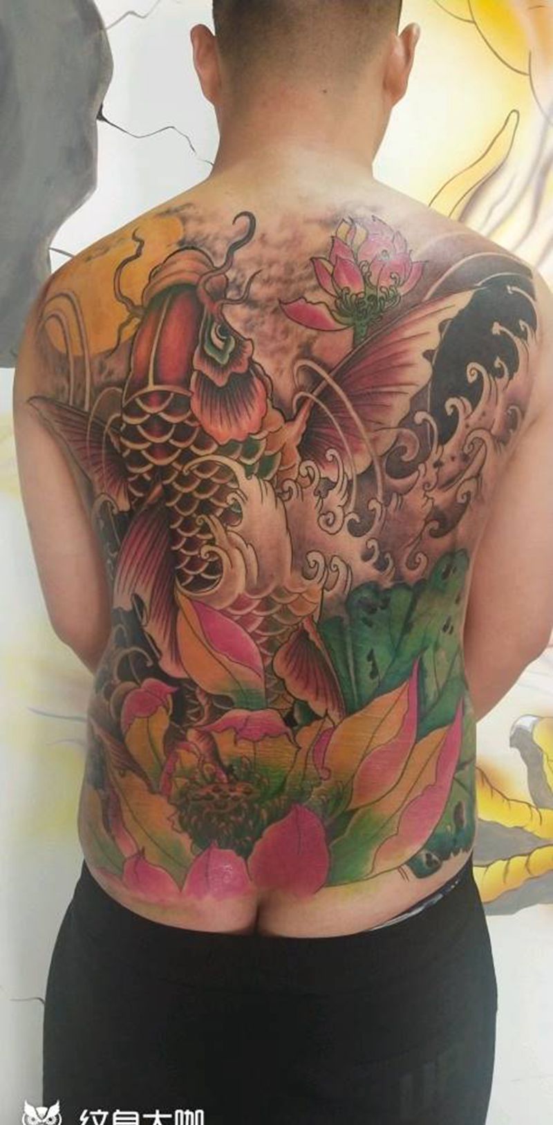 鲤鱼纹身图片_背部新传统老传统纹身图案