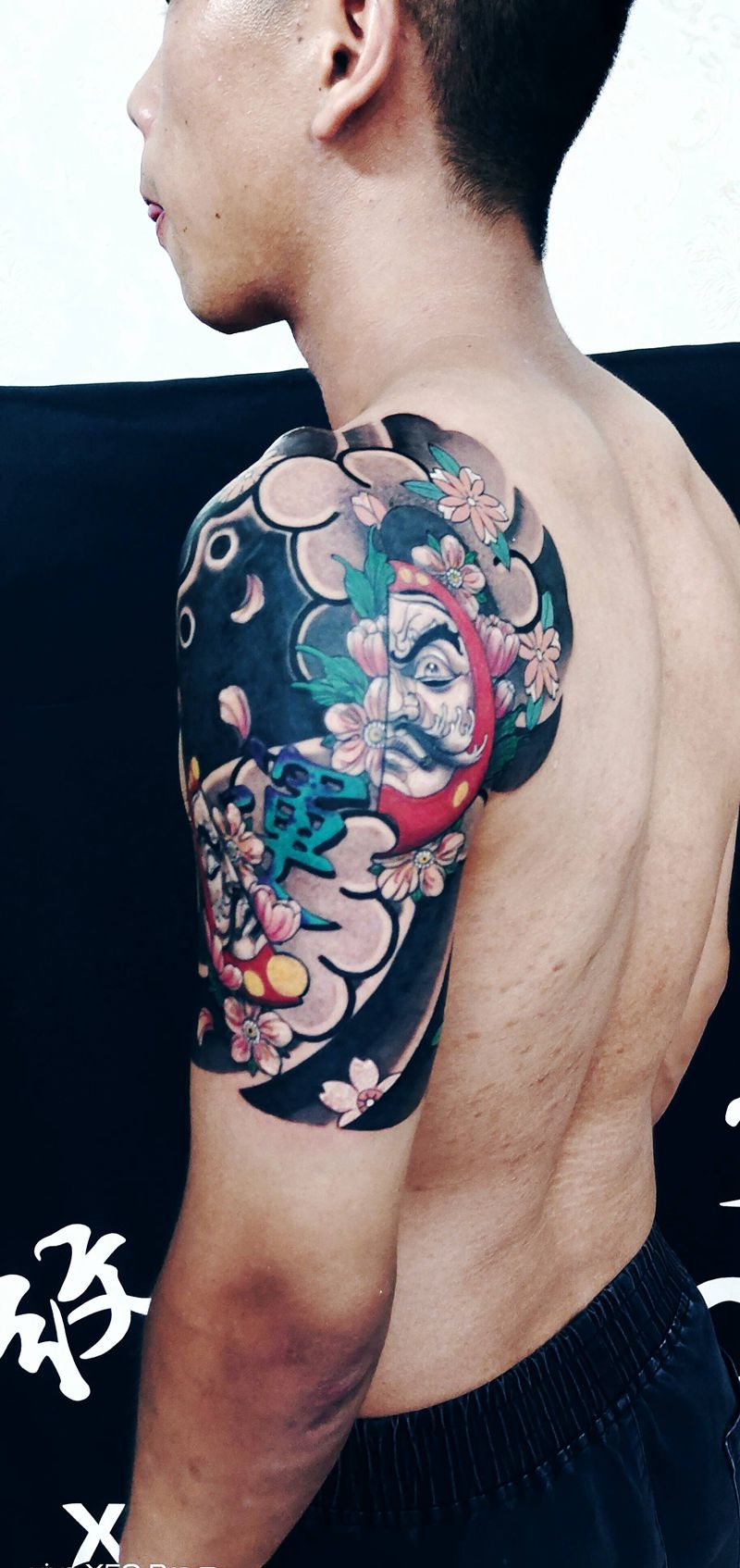 遮盖老传统纹身图片_肩部老传统纹身图案