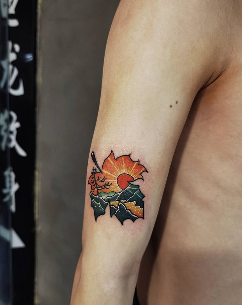 当前位置: 首页 >福建省莆田市纹身店-闪电龙刺青会所纹身图案>枫叶纹身图片_手臂老传统新传统纹身图案