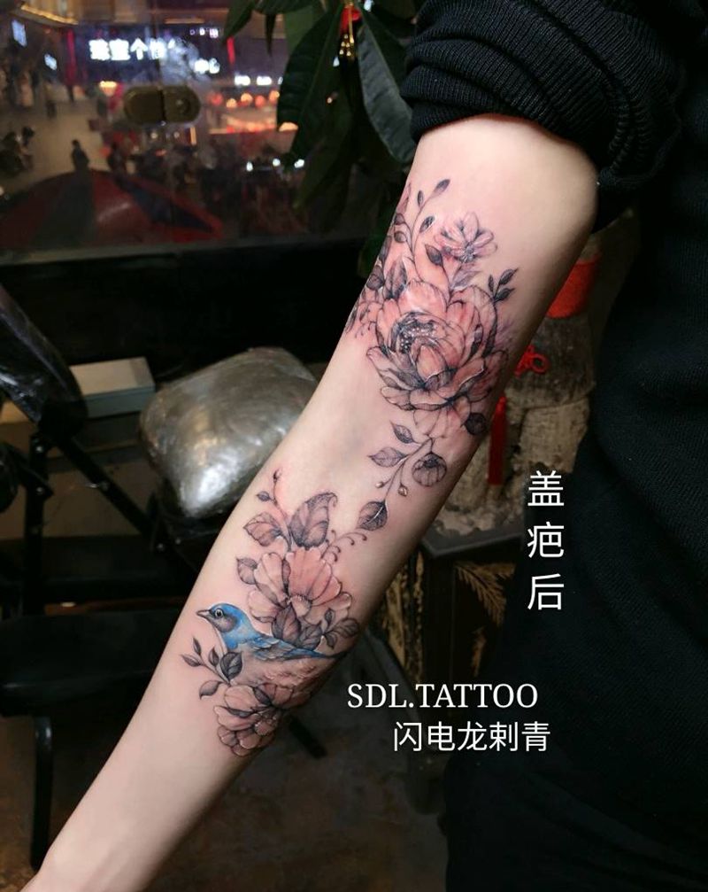 遮盖伤疤纹身图片_手臂点刺纹身图案