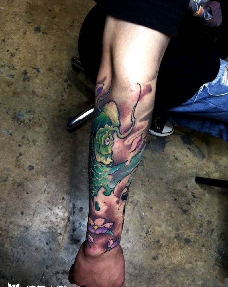 • T网红王老大花腿龙纹身图片_腿部新传统纹身图案