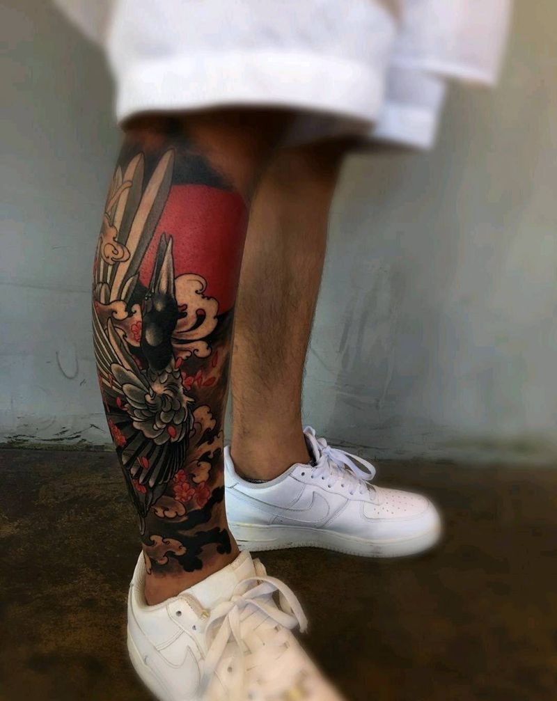 • T网红王老大花腿龙纹身图片_腿部新传统纹身图案