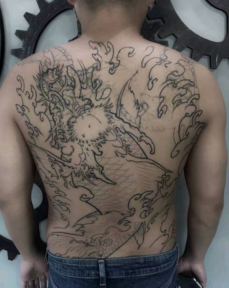当前位置: 首页 >福建省莆田市纹身店-闪电龙刺青会所纹身图案>满背鳌鱼 未完成作品纹身图片