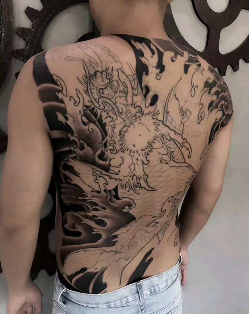 当前位置: 首页 >福建省莆田市纹身店-闪电龙刺青会所纹身图案>满背鳌鱼 未完成作品纹身图片