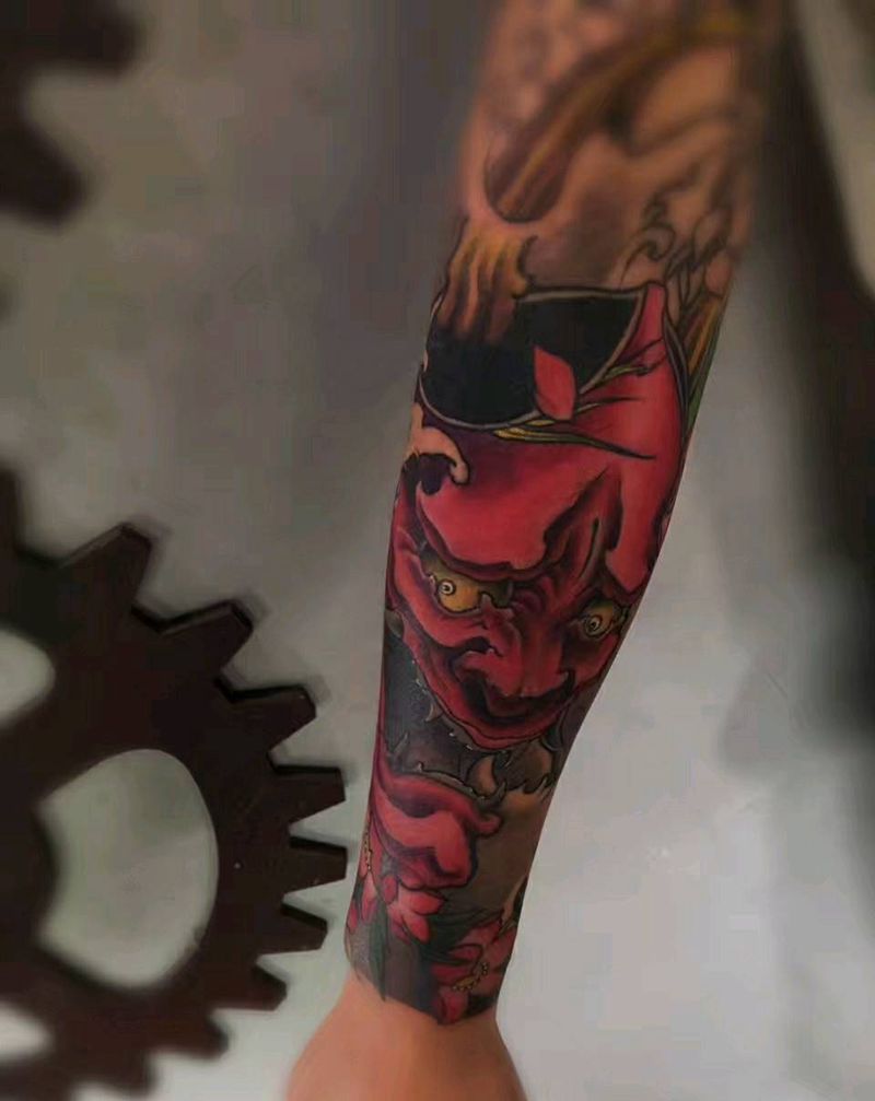 当前位置: 首页 >福建省莆田市纹身店-闪电龙刺青会所纹身图案>般若小臂纹身图片
