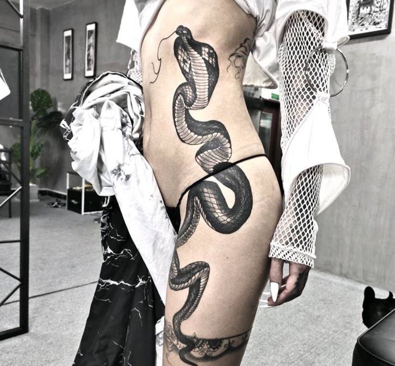 当前位置: 首页 >福建省莆田市纹身店-蛇師紋艺工作室纹身图案>盘条蛇纹身图片_腰部腿部欧美写实蛇纹身图案