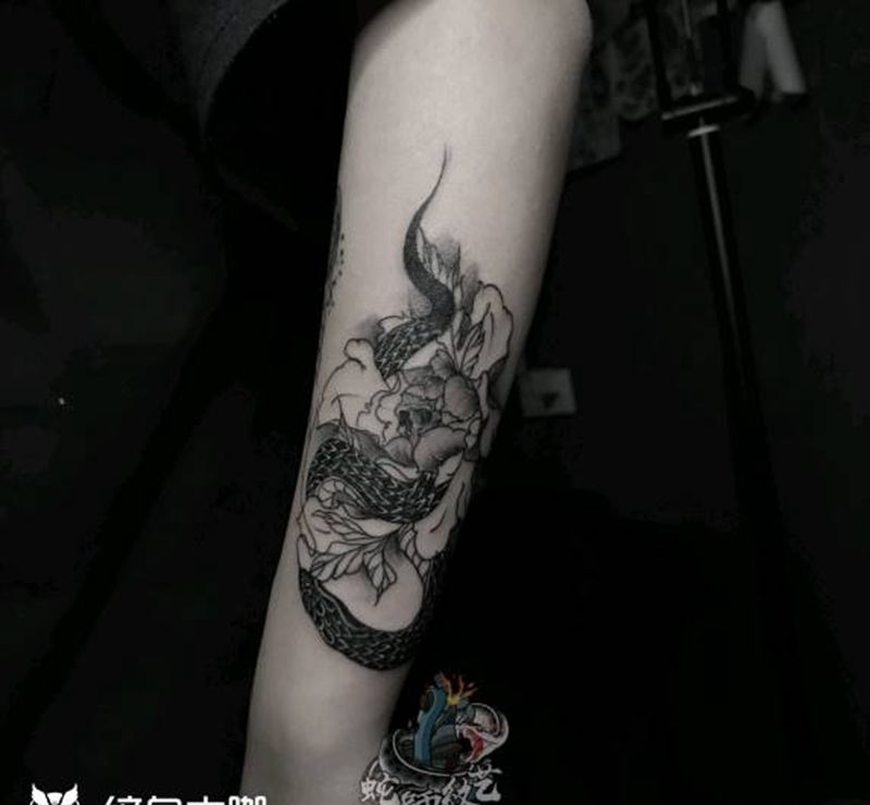 当前位置: 首页 >福建省莆田市纹身店-蛇師紋艺工作室纹身图案>蛇盘牡丹纹身图片_手臂Old School蛇花纹身图案