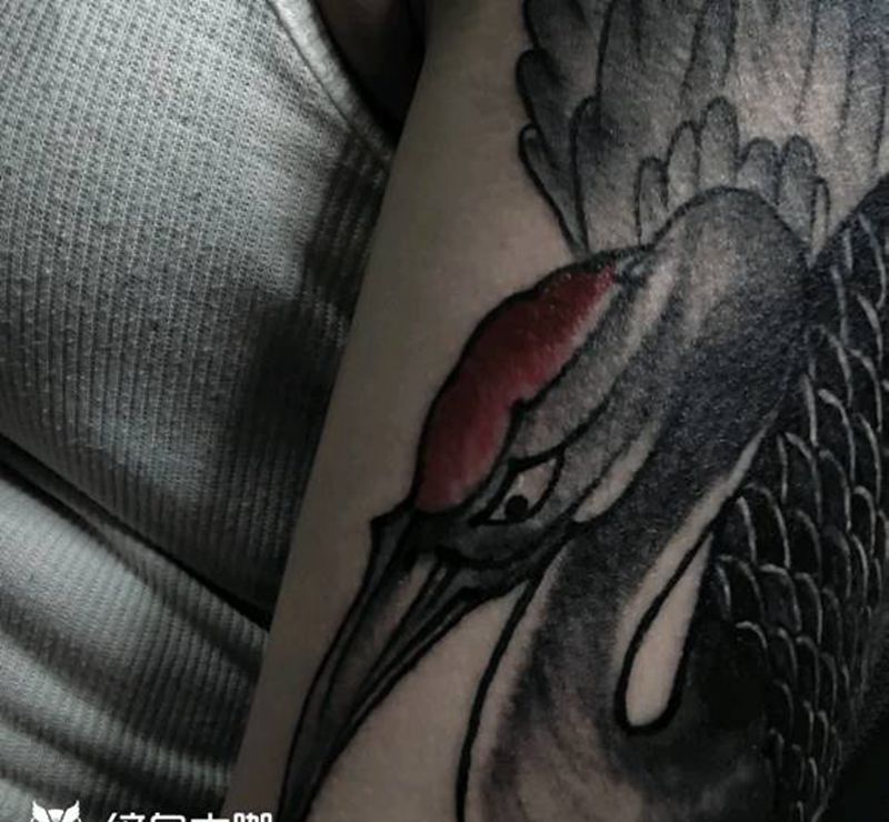 当前位置: 首页 >福建省莆田市纹身店-蛇師紋艺工作室纹身图案>仙鹤暴力遮盖纹身图片_手臂新传统鹤遮盖纹身图案