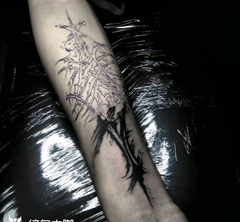 当前位置: 首页 >福建省莆田市纹身店-蛇師紋艺工作室纹身图案>奇卡诺纹身图片_手臂花体字水墨奇卡诺纹身图案
