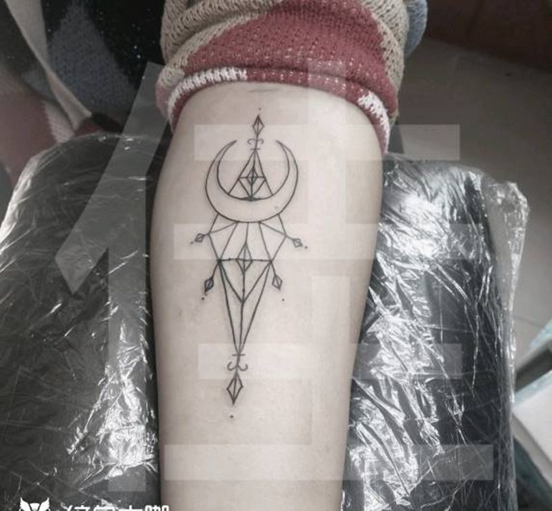 树 月亮 几何 枫叶 小图纹身图片_手臂水彩几何纹身图案