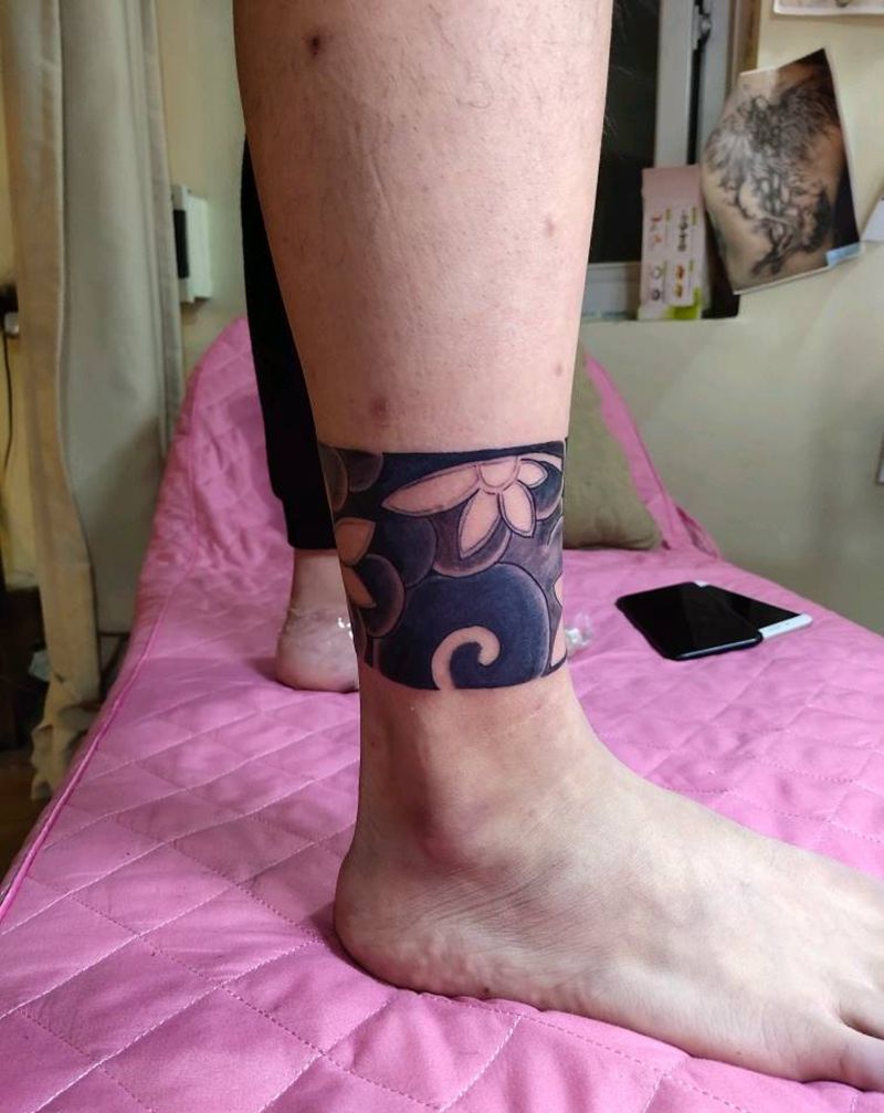 腿环纹身图片_腿部脚部老传统纹身图案