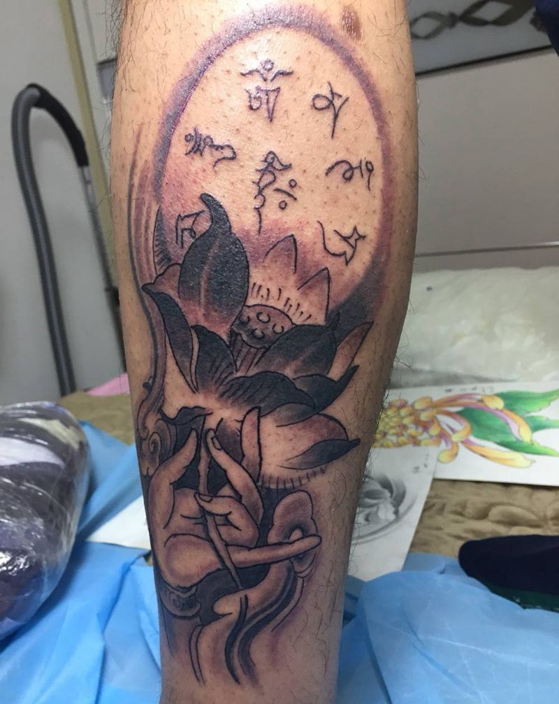 当前位置: 首页 >福建省莆田市纹身店-华生刺青Tattoo纹身图案>佛手捻花纹身图片