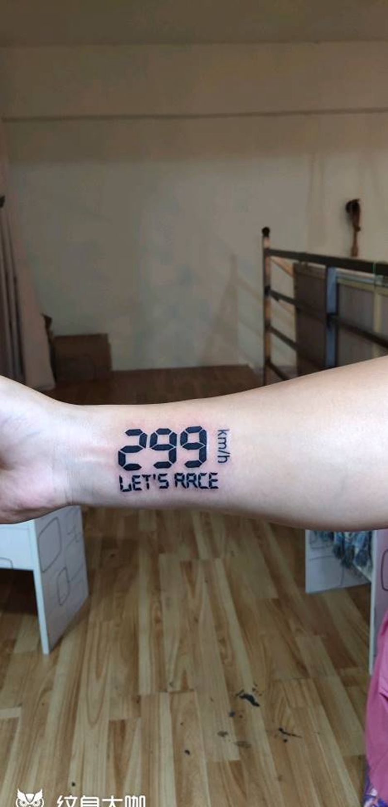 当前位置: 首页 >福建省莆田市纹身店-华生刺青Tattoo纹身图案>299㎞/h纹身图片_手臂纹身图案
