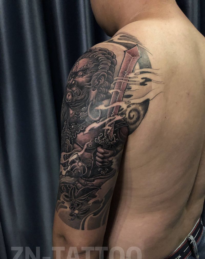 当前位置: 首页 >福建省三明市纹身店-执念刺青社纹身图案>不动明王半胛纹身图片_肩部胸部新传统纹身图案